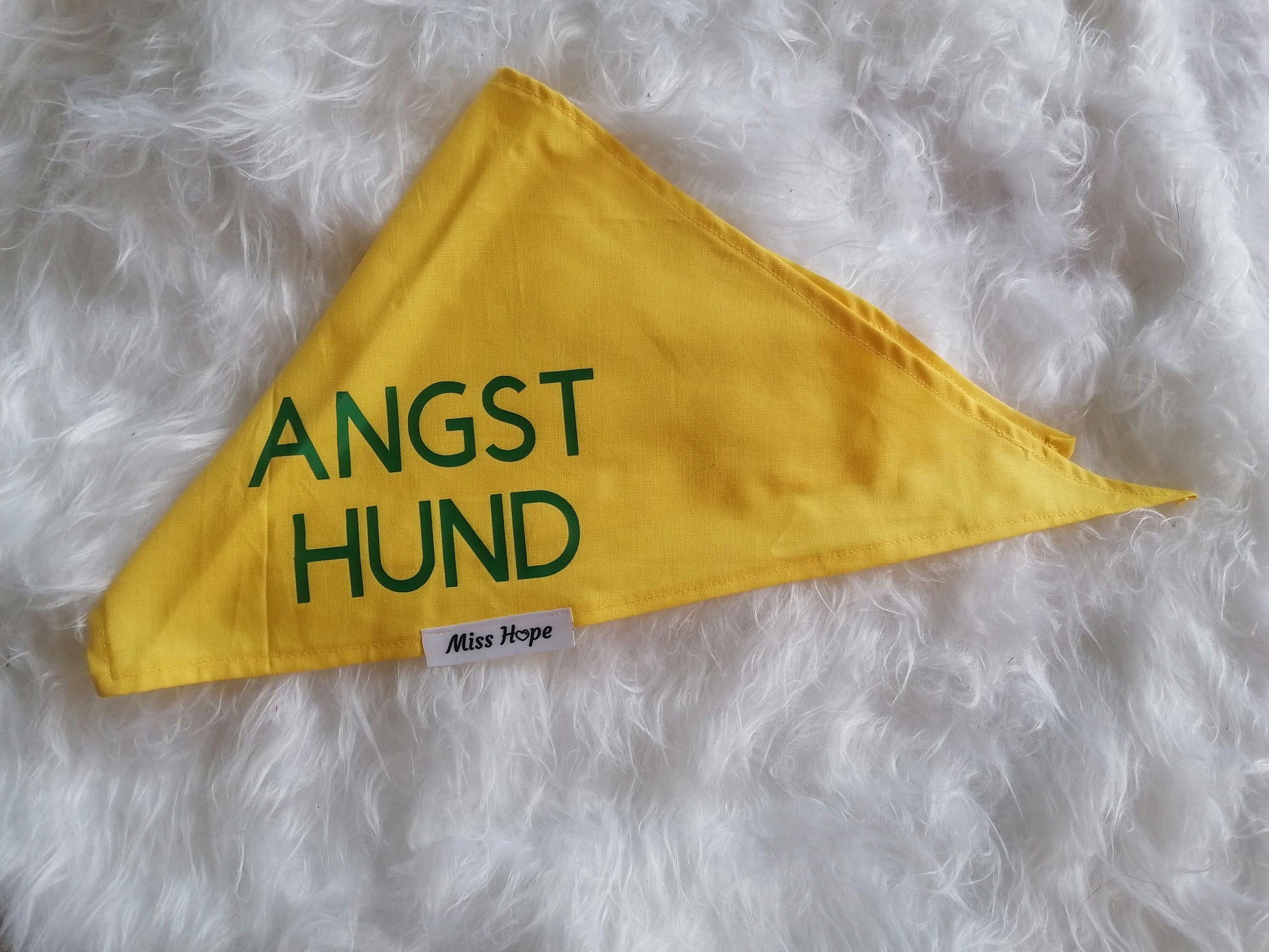 Das Gelbe Tuch mit seitlichem Aufdruck, damit es auch lesbar bleibt. Einfach genäht.