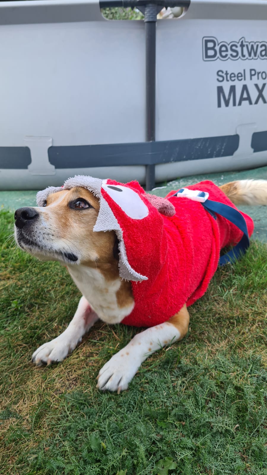 Bitte bei der Bestellung den Halsumfang und die Rückenlänge angeben. Da er auf Maß geschnitten ist.