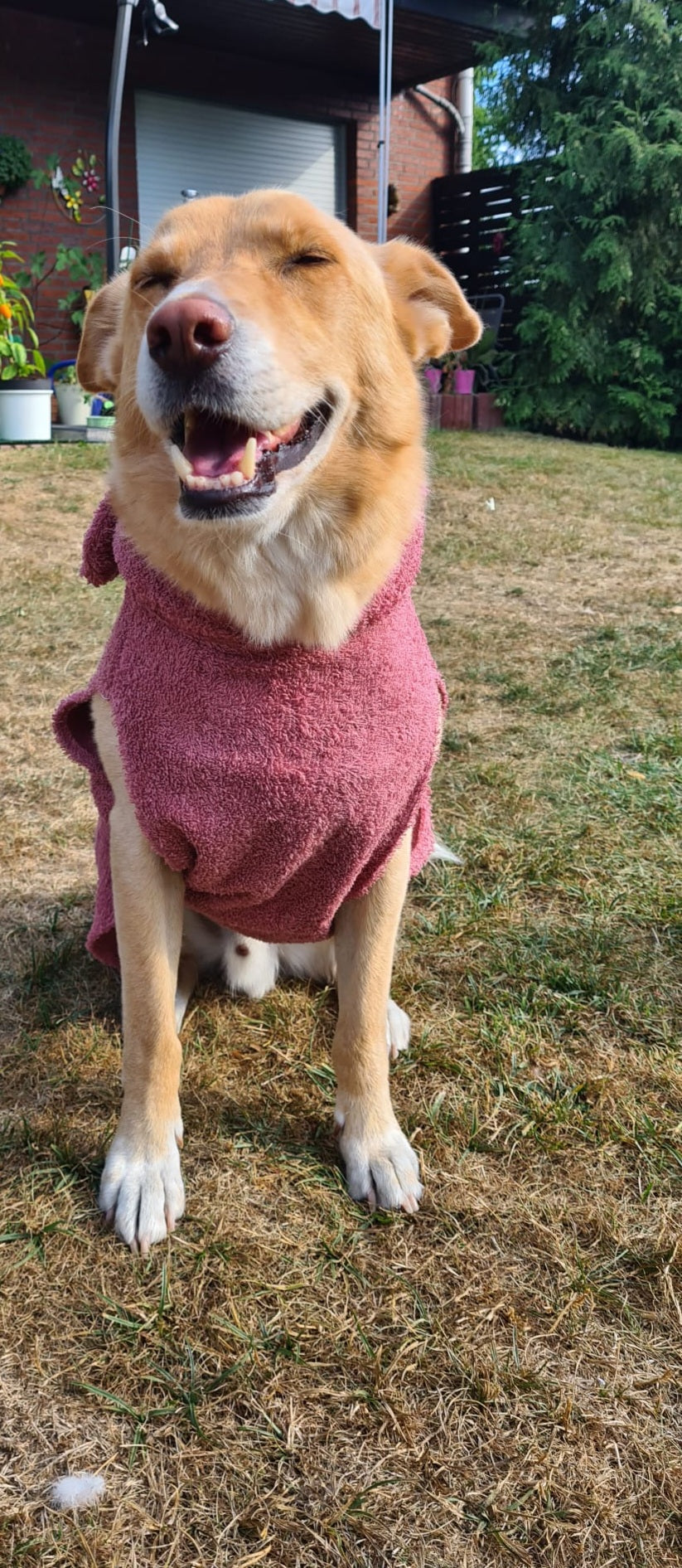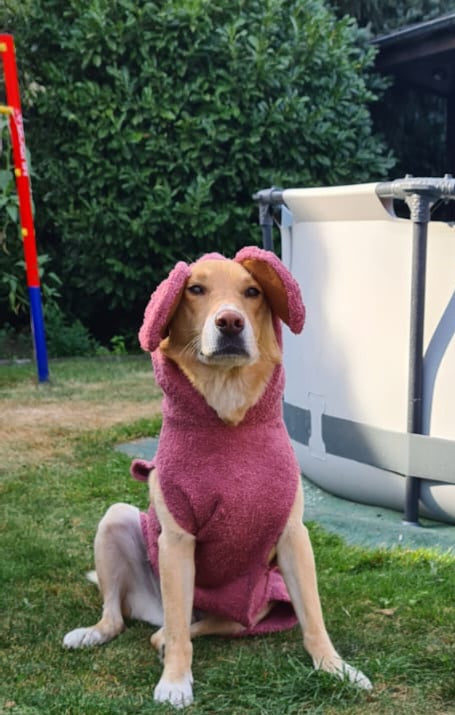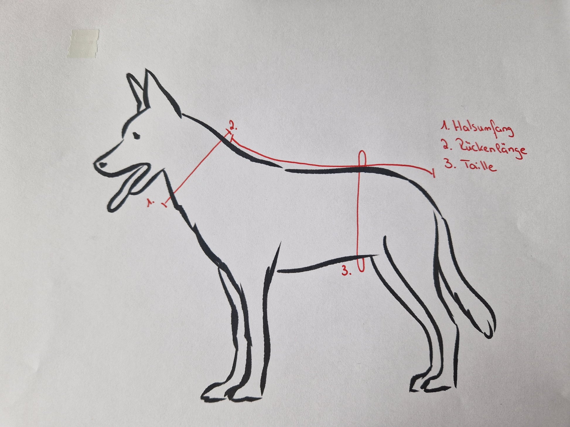 Bitte bei der Bestellung den Halsumfang und die Rückenlänge angeben. Da er auf Maß geschnitten ist.