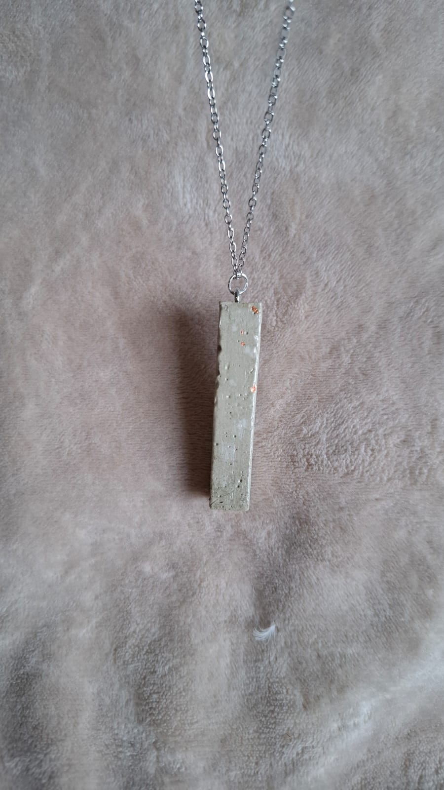 Der Anhänger besteht aus Beton und die Kette ist Modeschmuck.