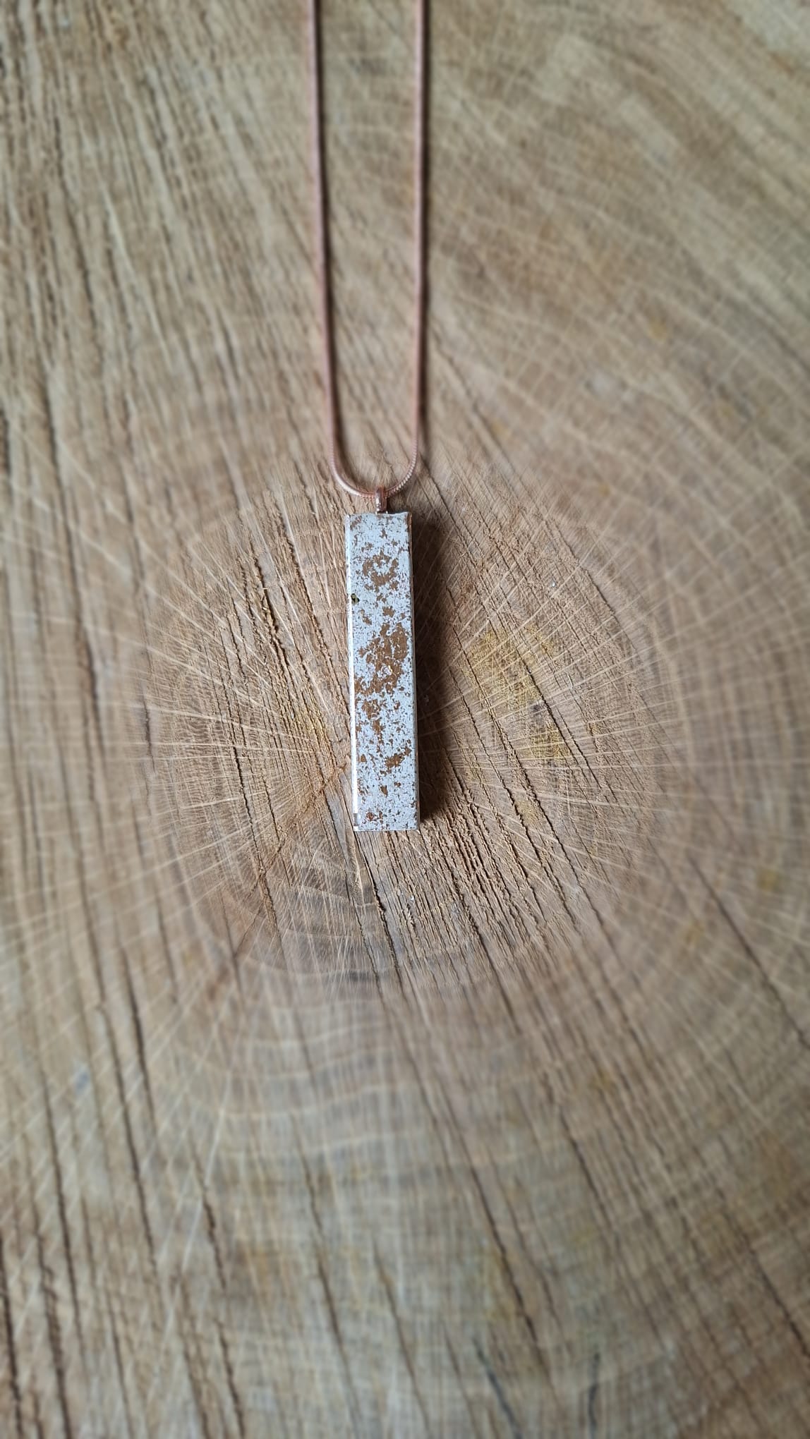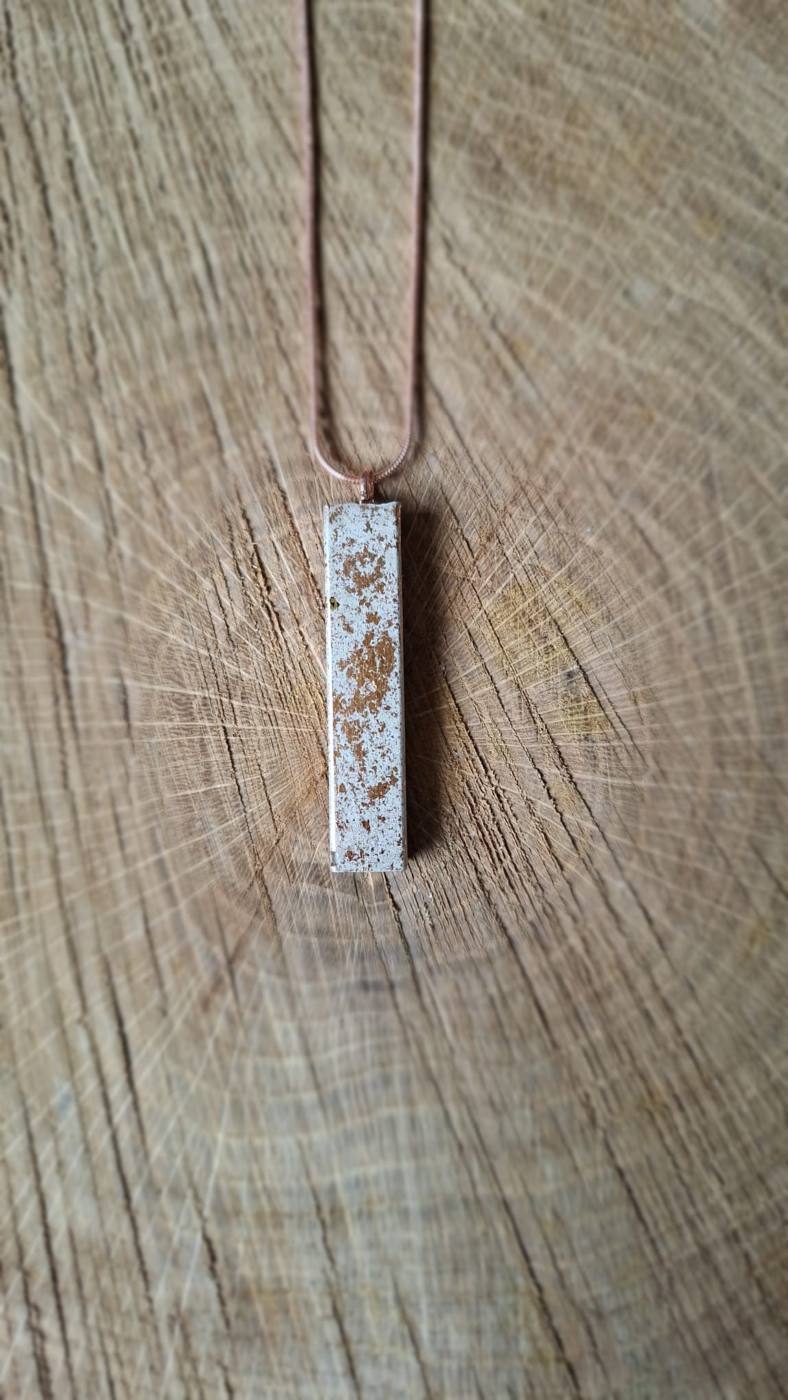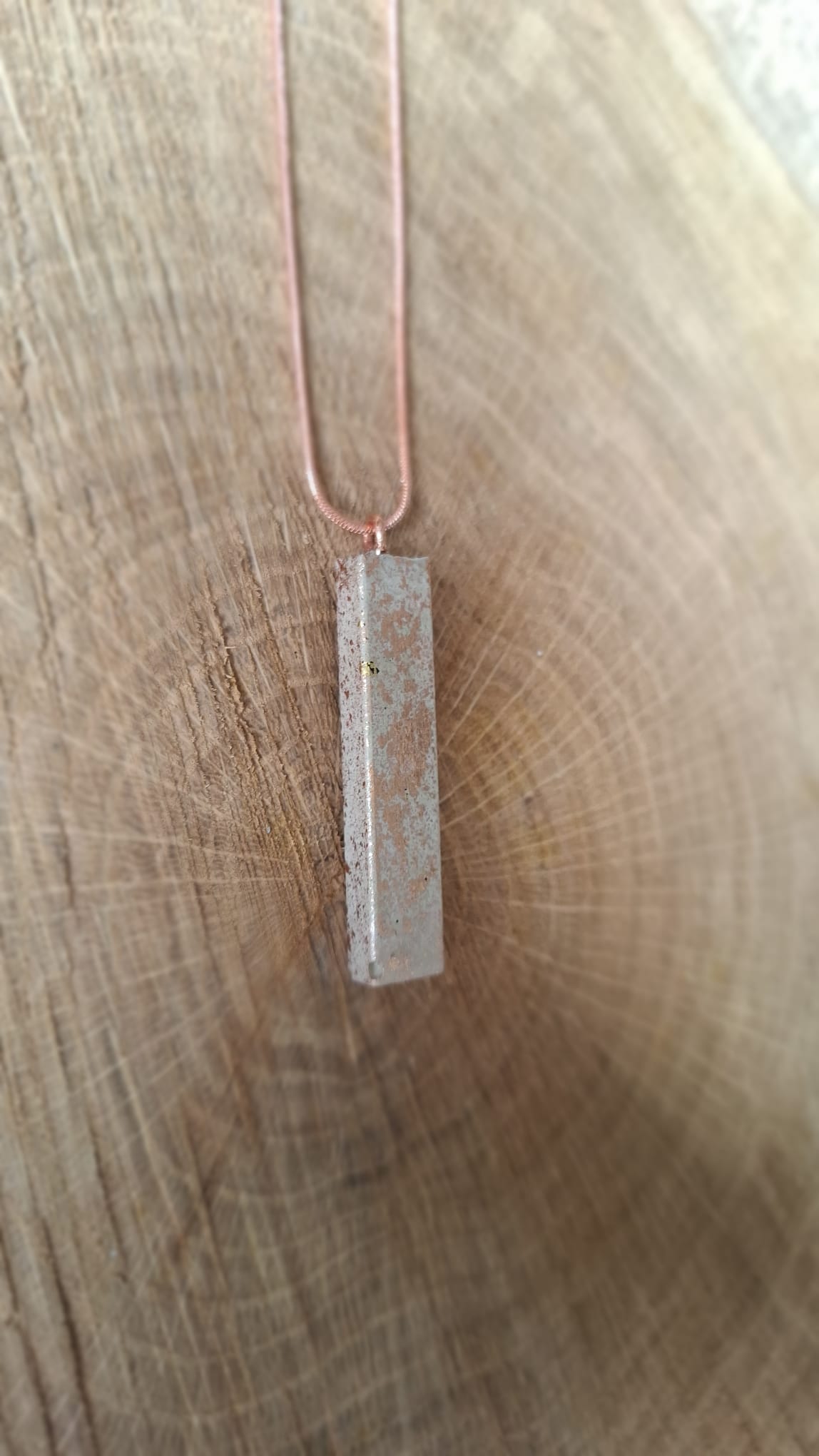 Die Kette besteht aus Modeschmuck und ist ca. 45 cm lang. Der Beton Anhänger hat eine Länge von ca. 5 cm