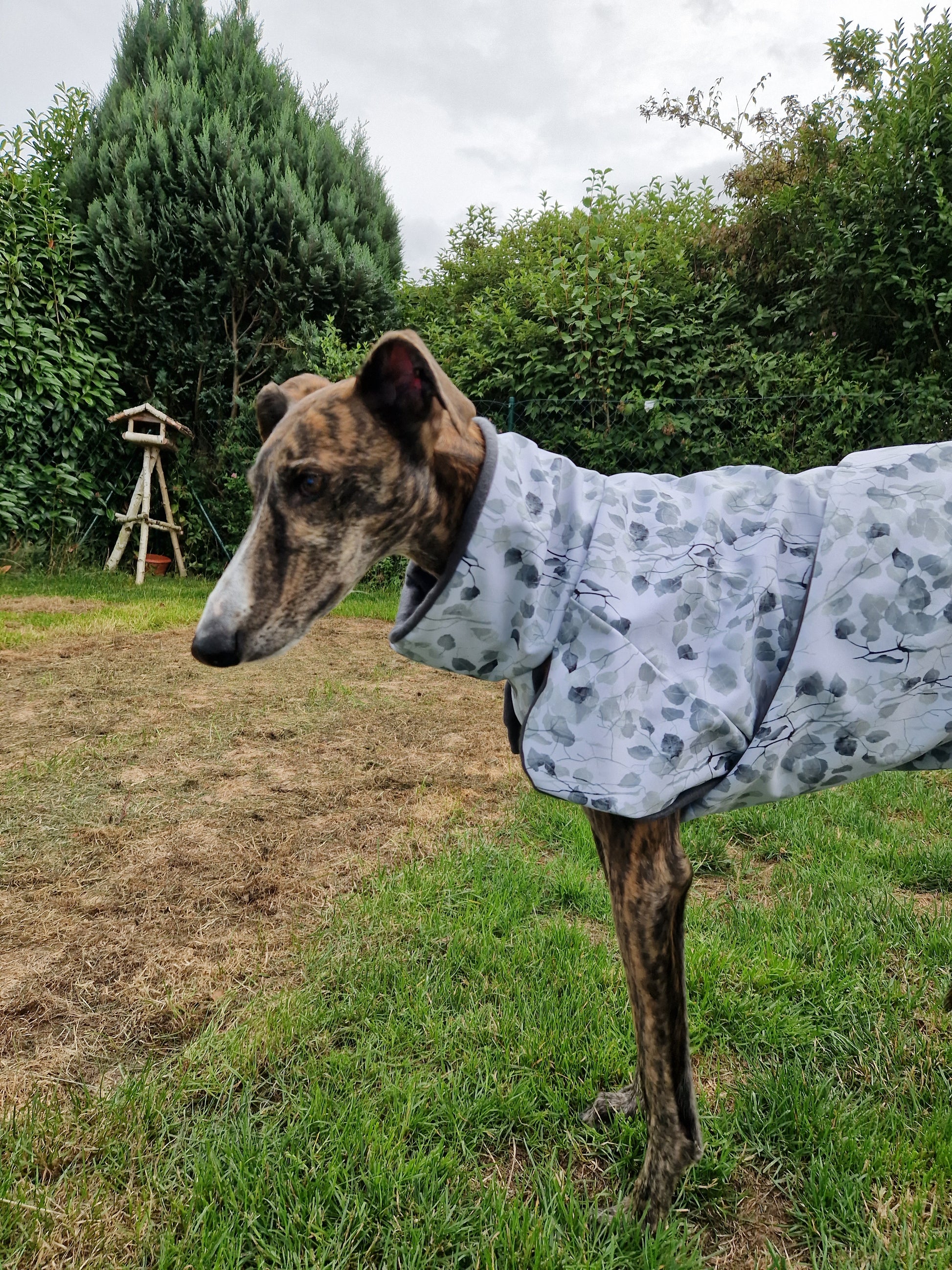Dieser Mantel in Größe L ist für breite / große Galgos, Greyhounds geeignet. Gerne beraten wir euch auch. Schreibt uns einfach an.