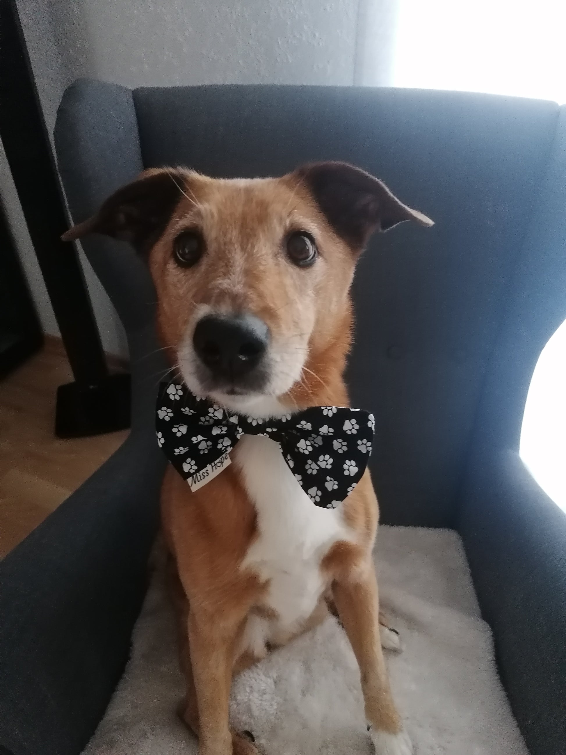 Schwarz, mit weisse Pfoten abdrücken, H 8 cm L 16 cm