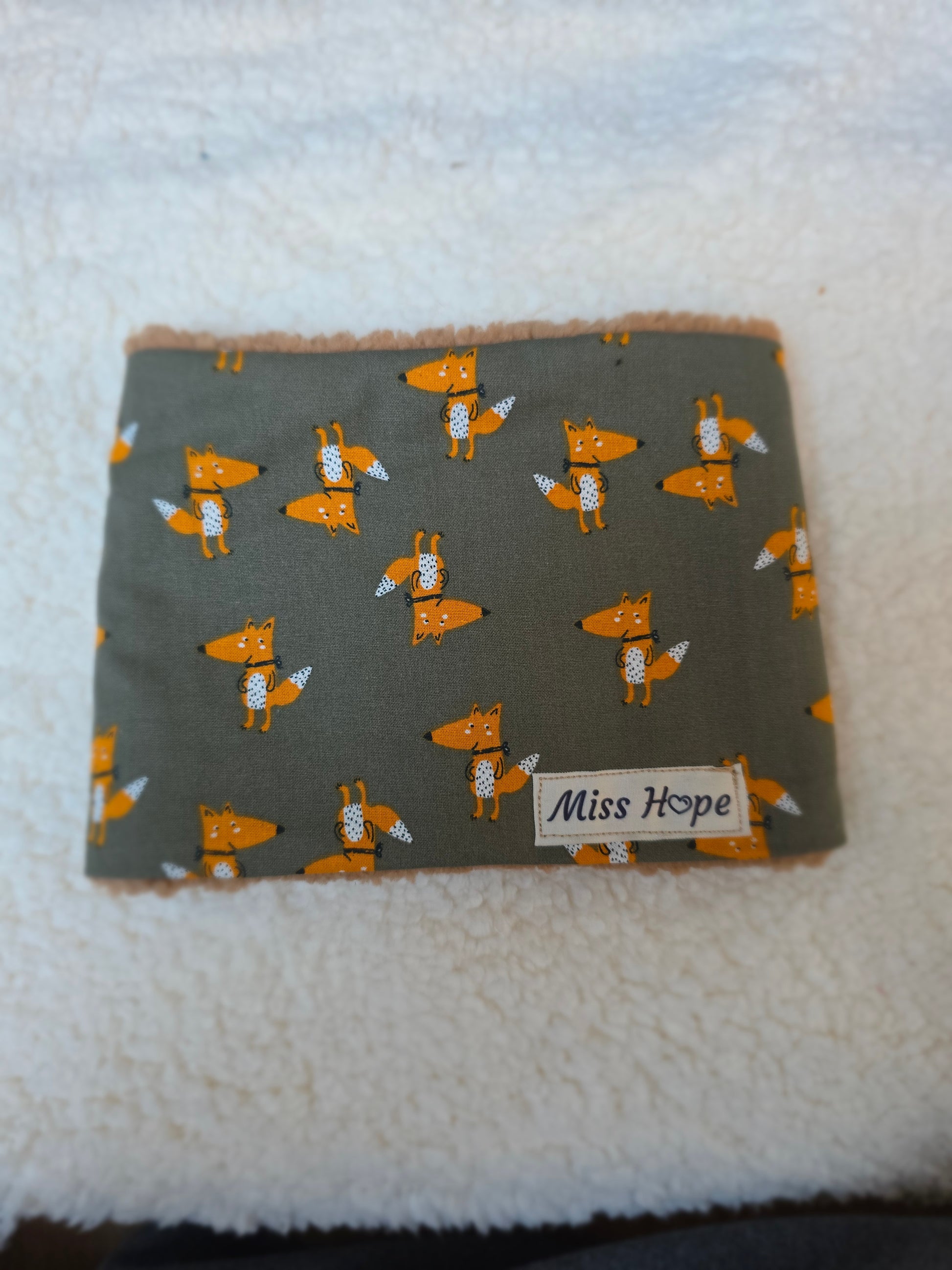 Der niedliche Fuchs Loop ist von innen mit Teddystoff verarbeitet und außen hat er das süße Fuchs Muster.