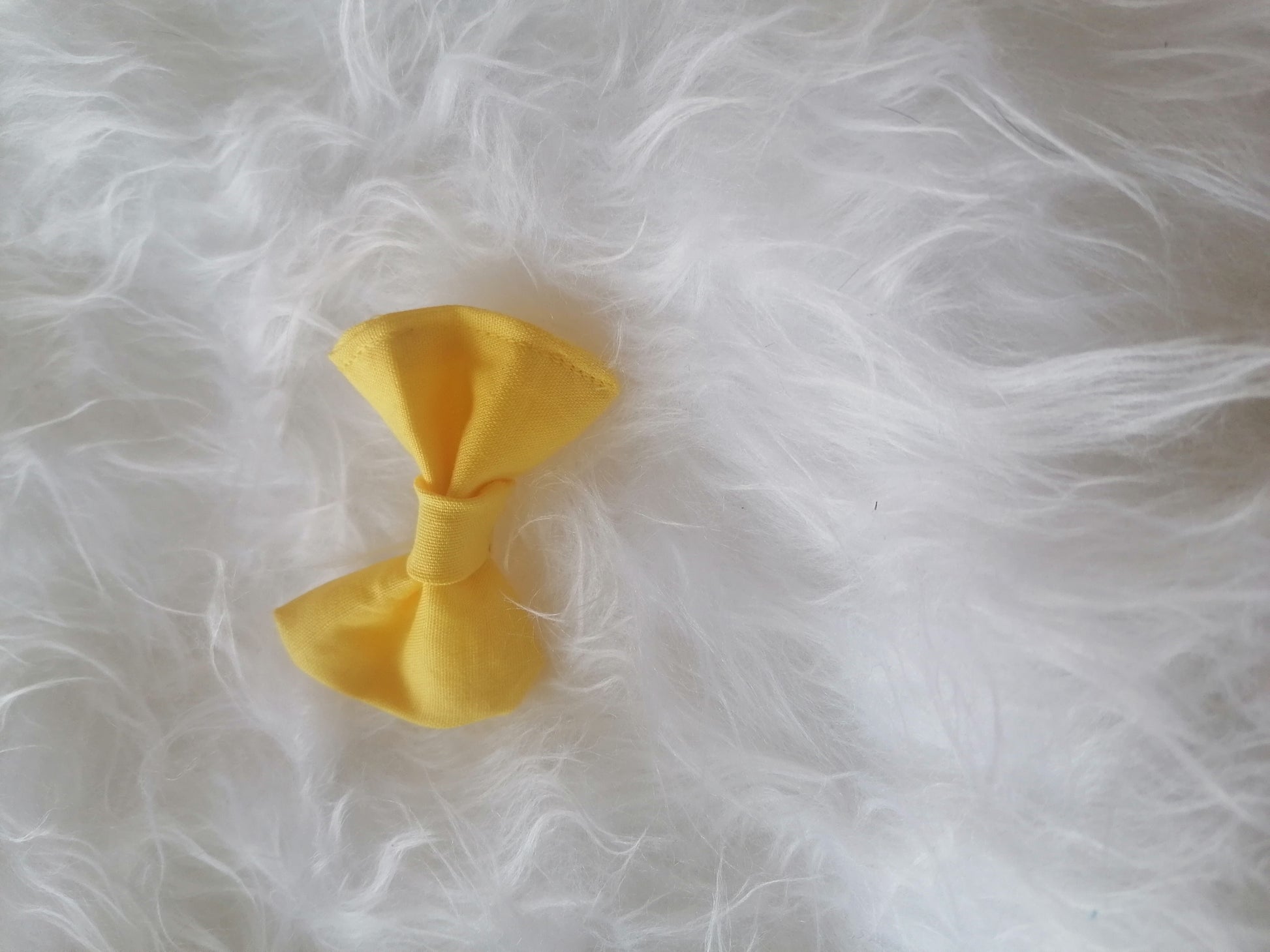 Diese gelbe Schleife ist 7cm x 4cm groß. Perfekt um sie an der Leine zu befestigen.
