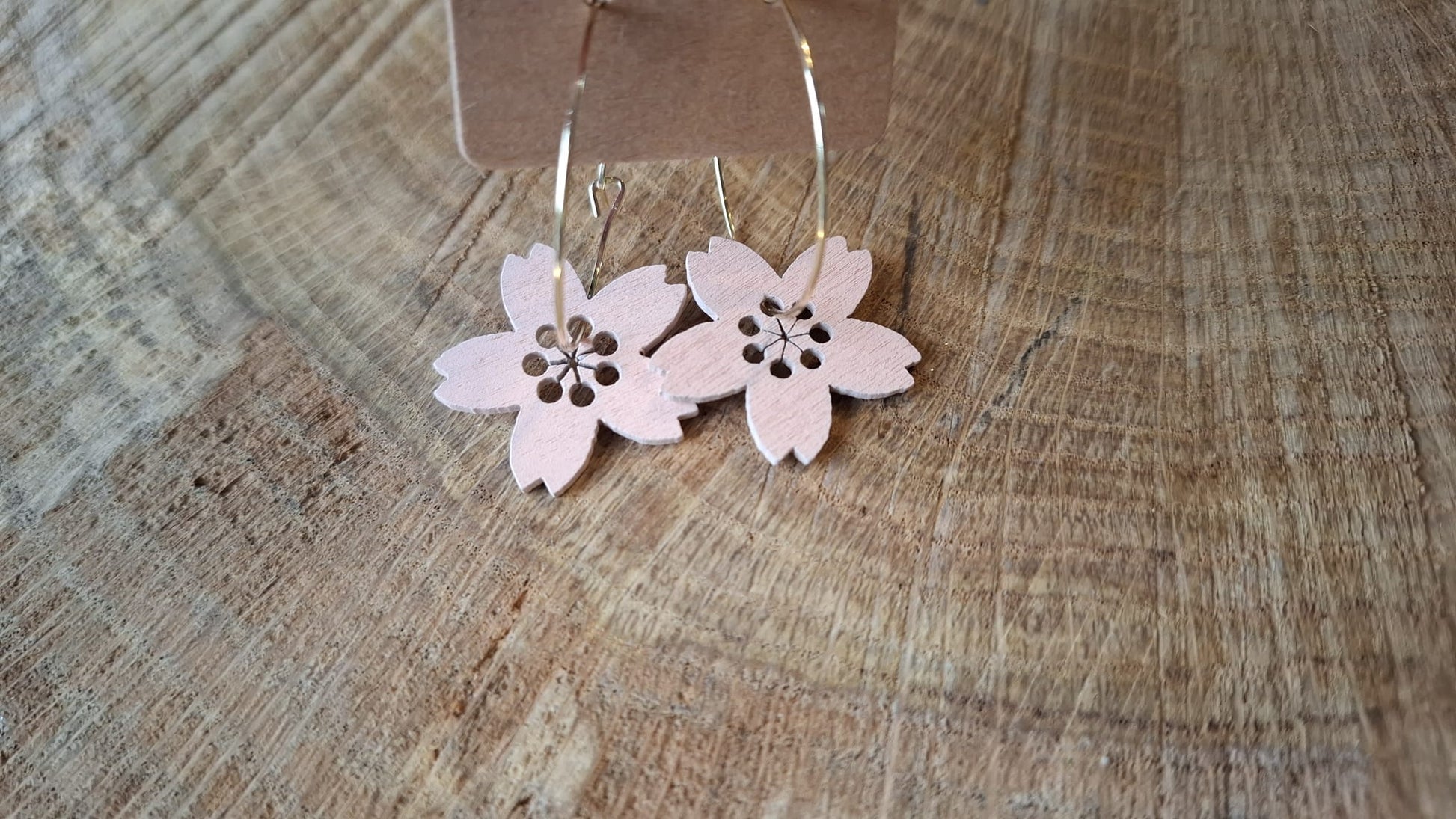Goldene Creolen trifft auf rosa Blume