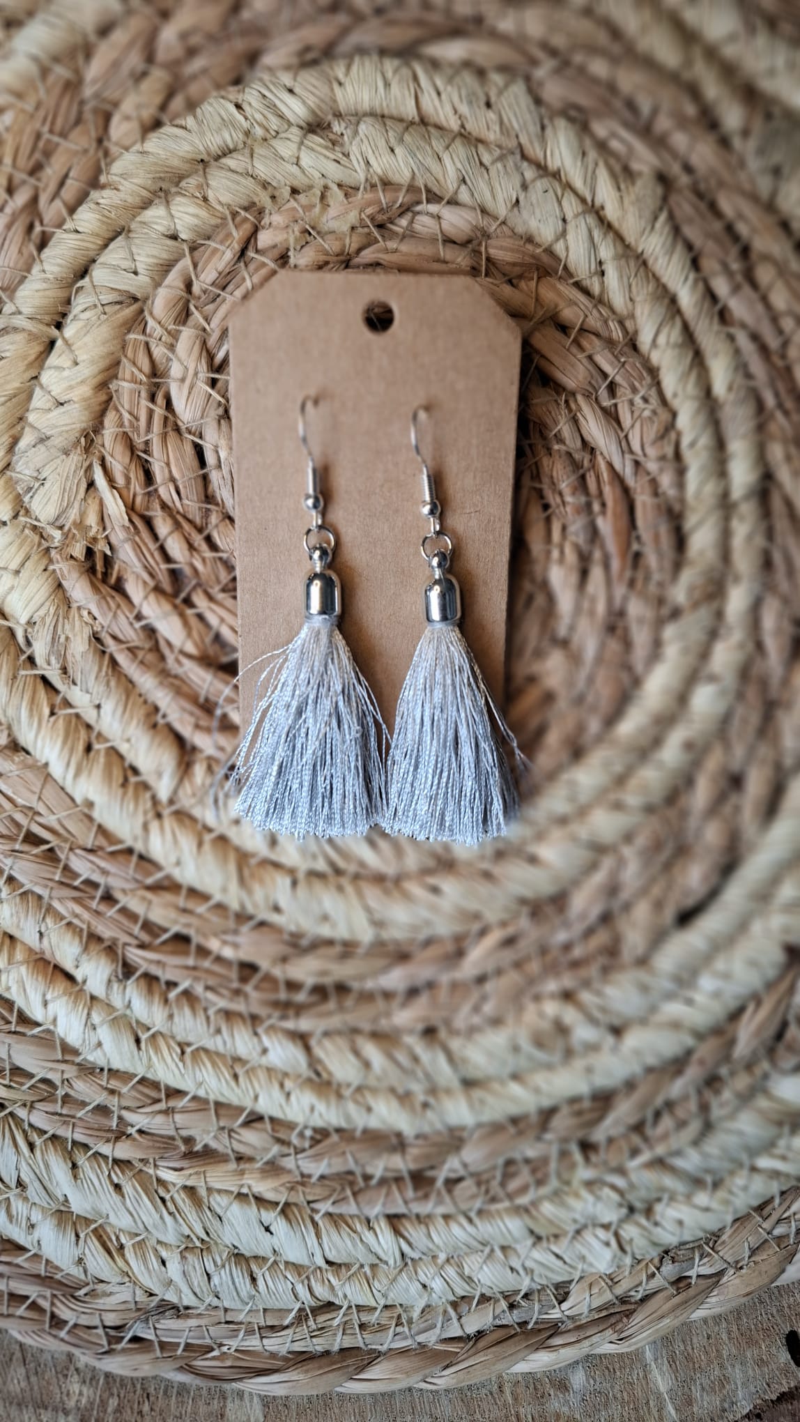 Hängender Ohrring mit blaugrauer Quaste