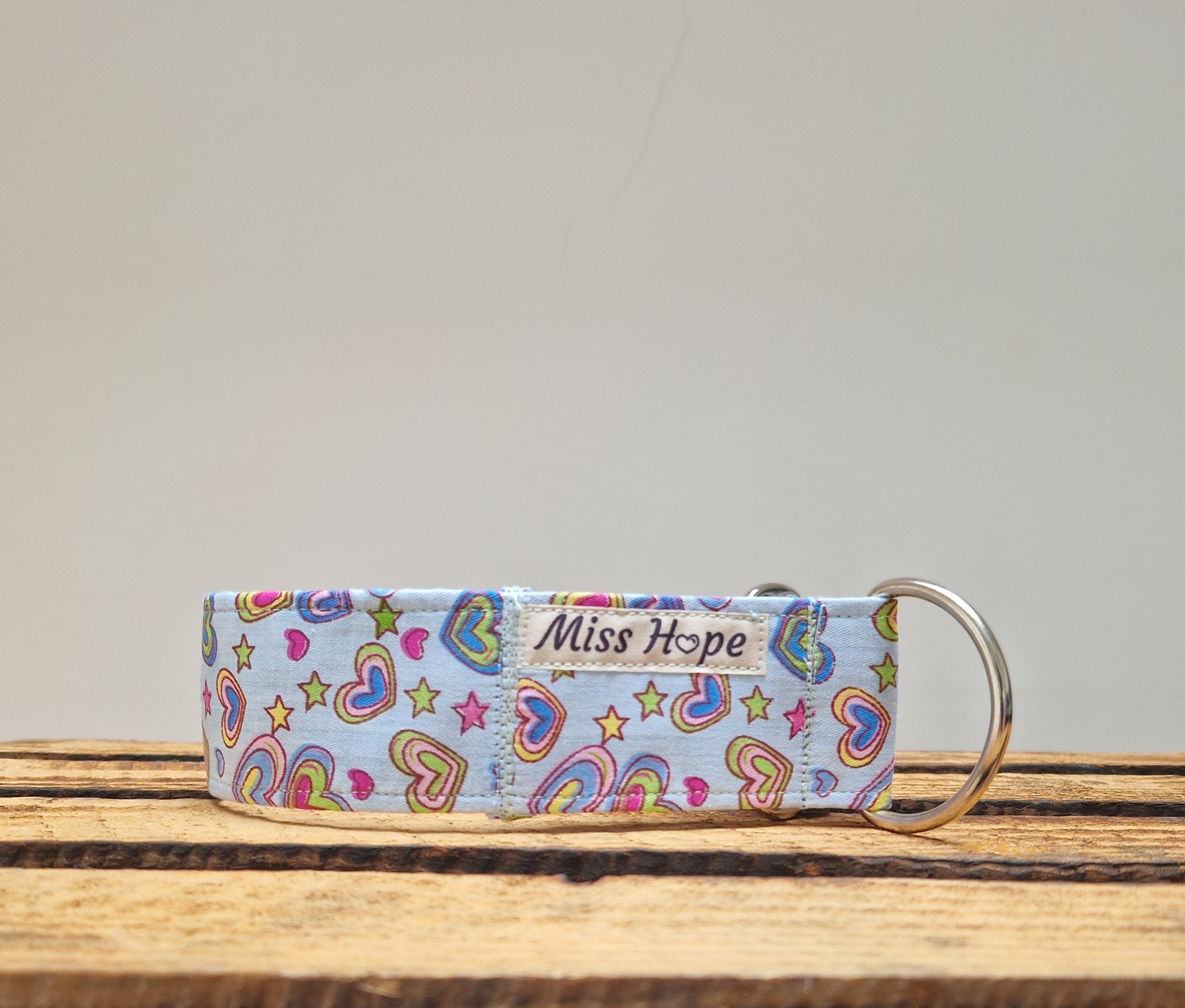 Das niedliche Zugstopp Halsband lässt sich bis zu einem Halsumfang von ca. 40 cm einstellen. Es ist 5 cm breit und verteilt bei einem Leinenruck den Zug auf mehrere Wirbel und schont den Kehlkopf, so werden dauerhafte Schäden vermieden.