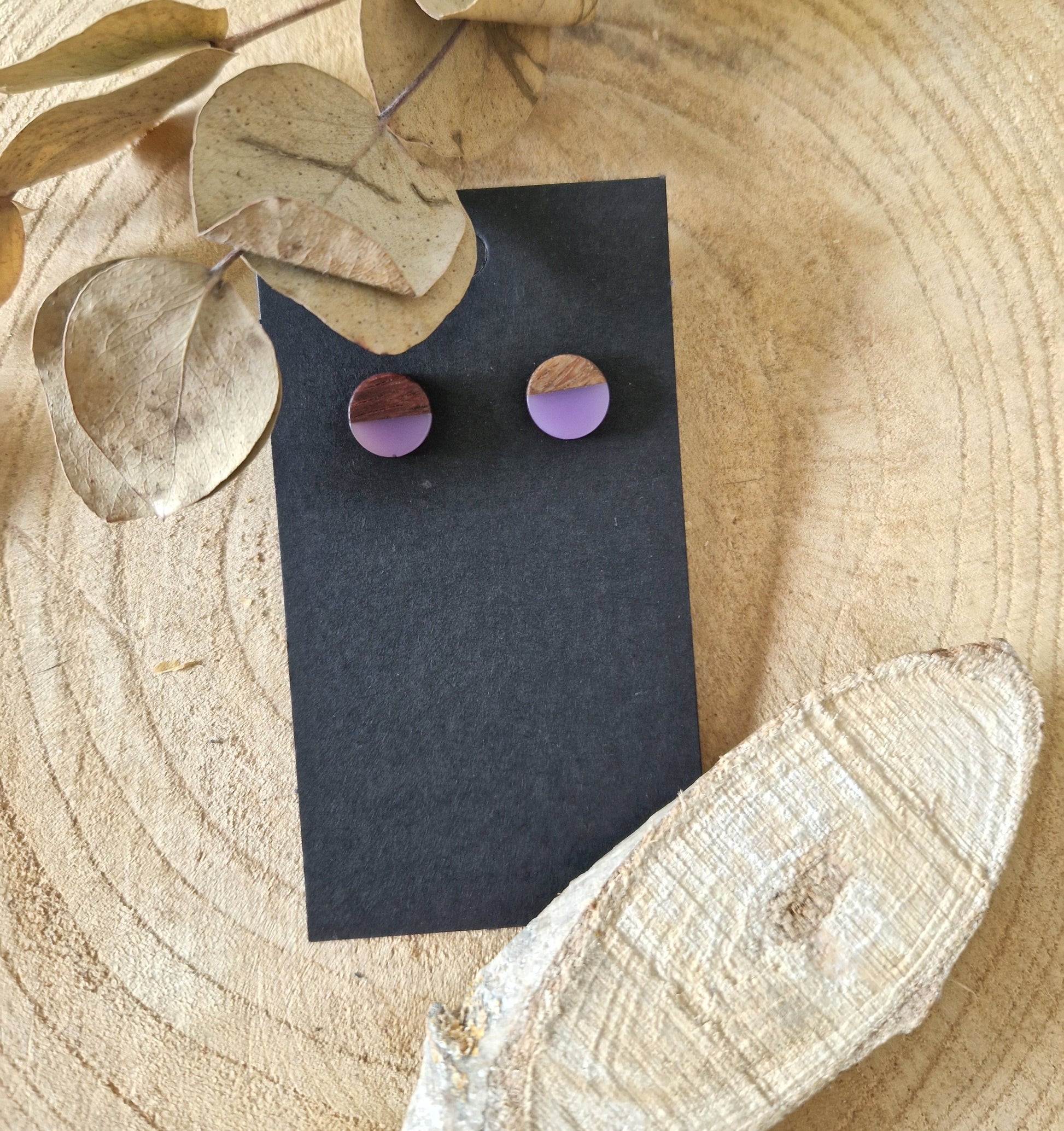 Diese Ohrstecker in Halb-Holz und Halb-Harz-Design haben einen Durchmesser von 1 cm. Er ist aus Walnussholz und mit einem 316er Edelstahlstift zum verschließen.