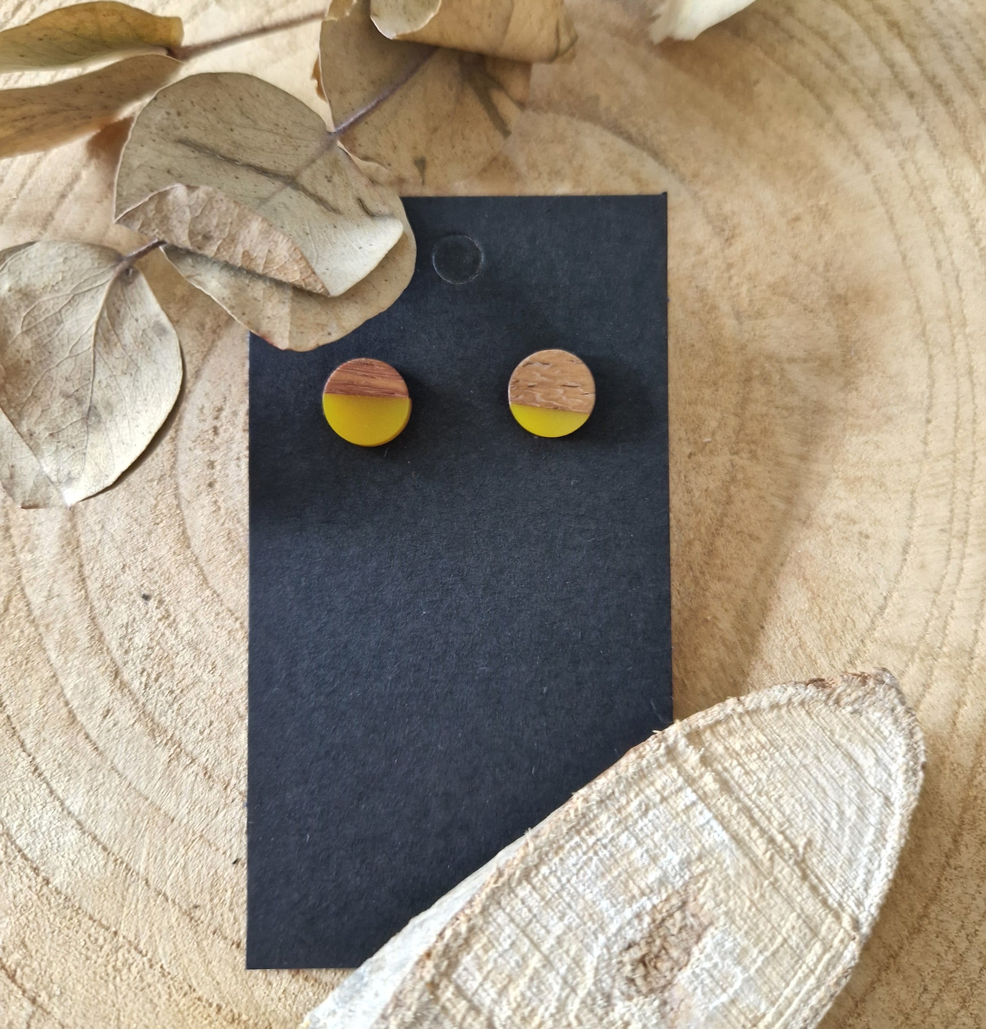 Diese Ohrstecker in Halb-Holz und Halb-Harz-Design haben einen Durchmesser von 1 cm. Er ist aus Walnussholz und mit einem 316er Edelstahlstift zum verschließen.