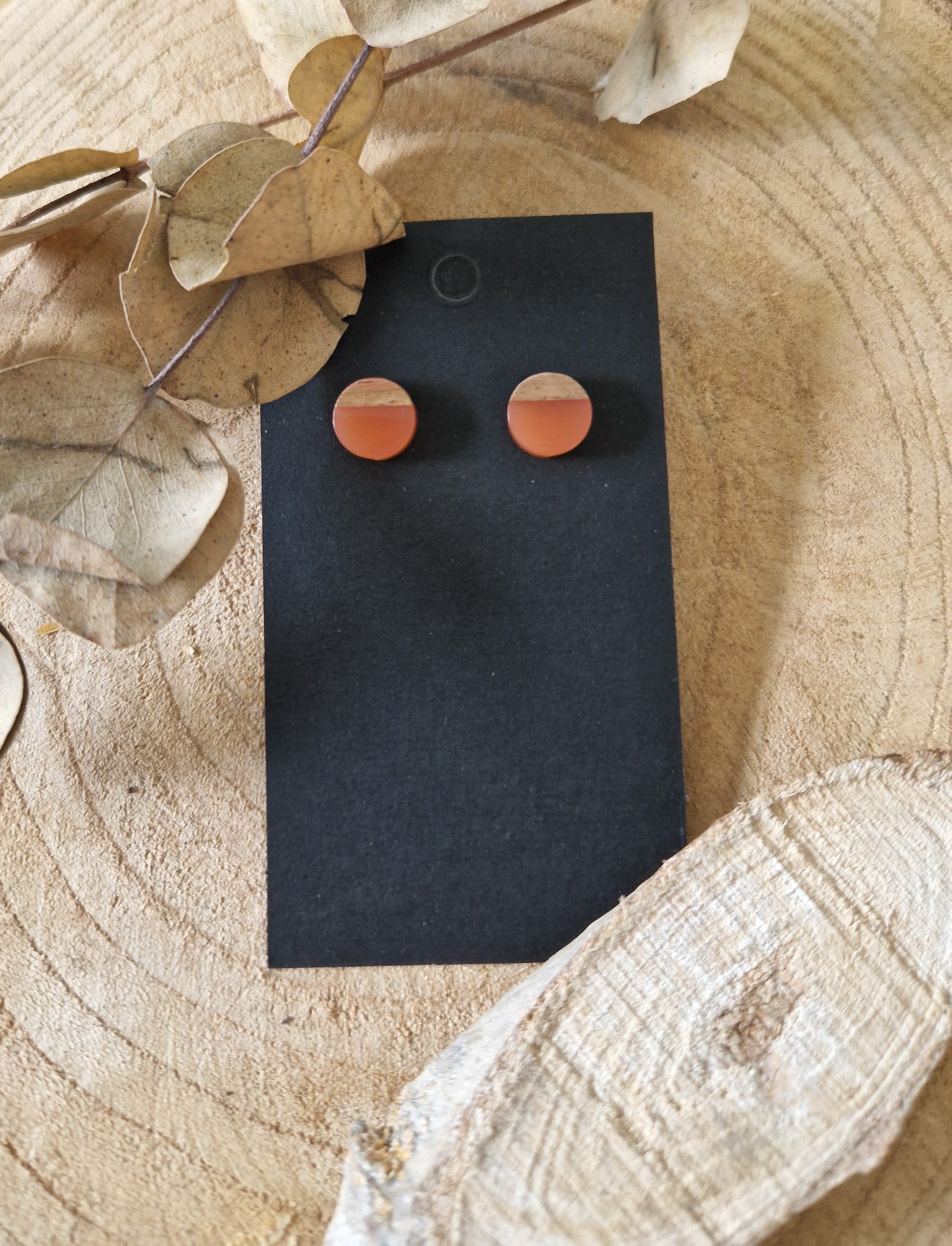 Diese Ohrstecker in Halb-Holz und Halb-Harz-Design haben einen Durchmesser von 1 cm. Er ist aus Walnussholz und mit einem 316er Edelstahlstift zum verschließen.