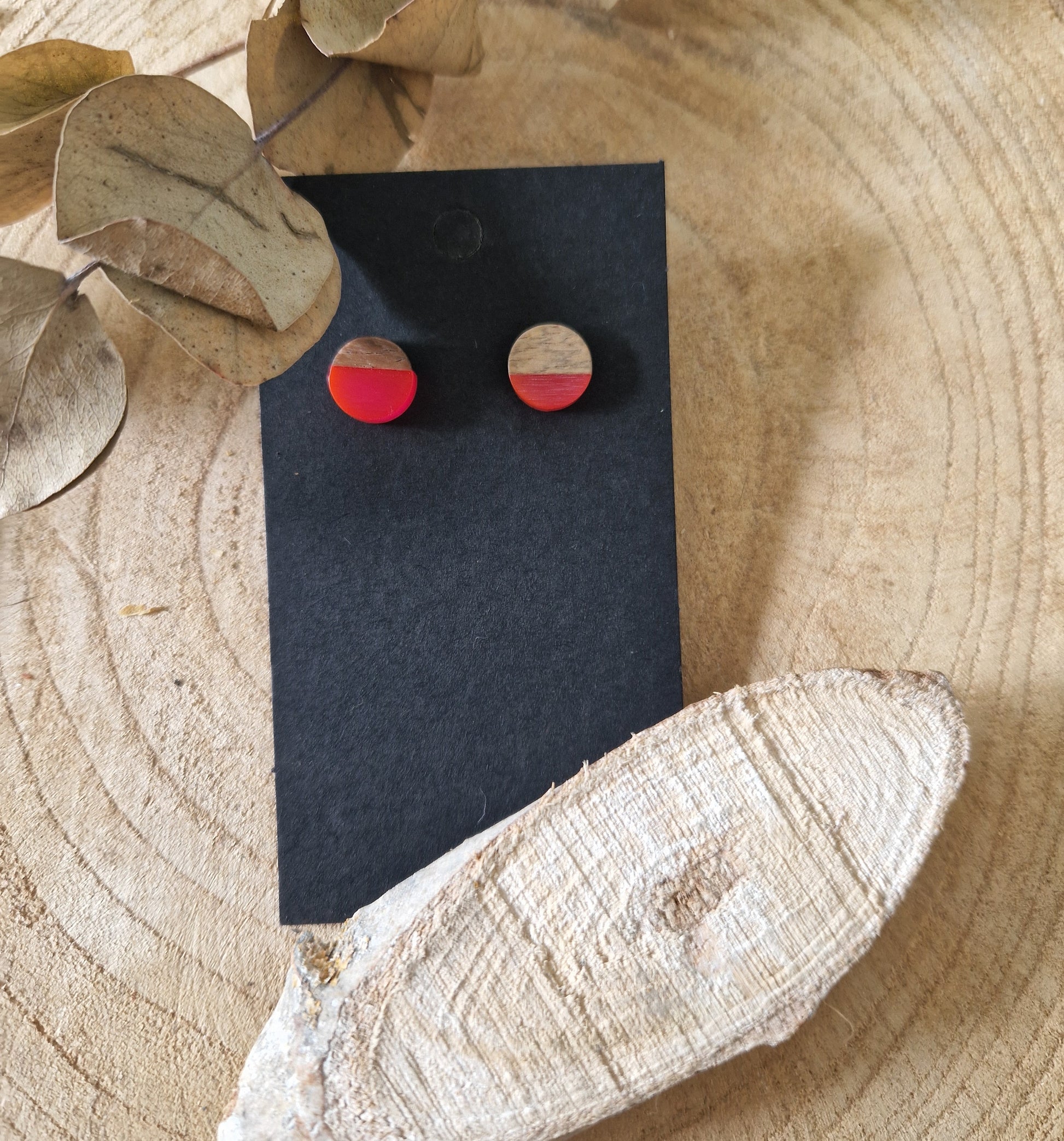 Diese Ohrstecker in Halb-Holz und Halb-Harz-Design haben einen Durchmesser von 1 cm. Er ist aus Walnussholz und mit einem 316er Edelstahlstift zum verschließen.
