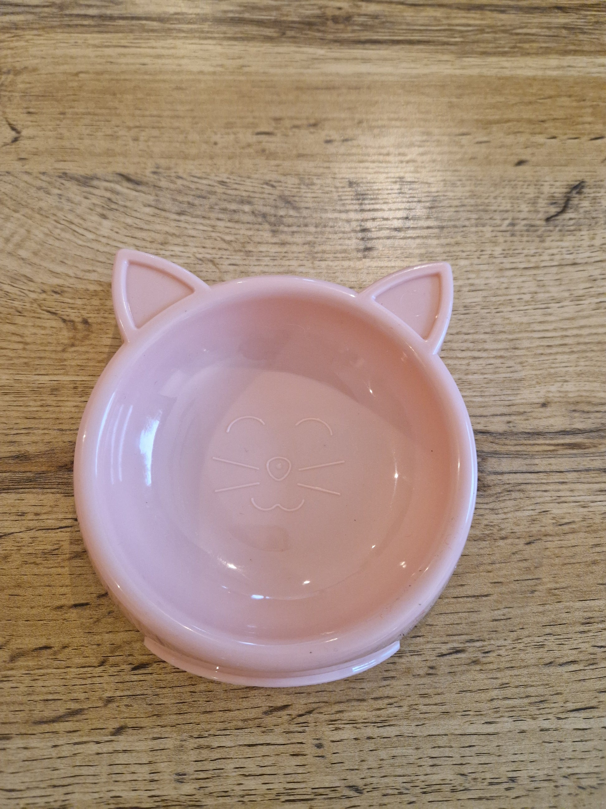 Der niedliche Katzennapf in altrosa ist 15cm x 15cm groß und besteht aus Plastik. Dazu gehören der süße Katzenschwamm.