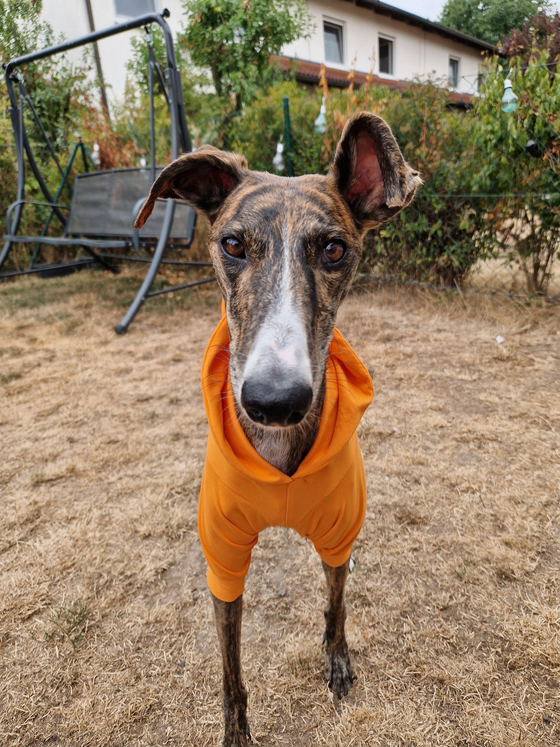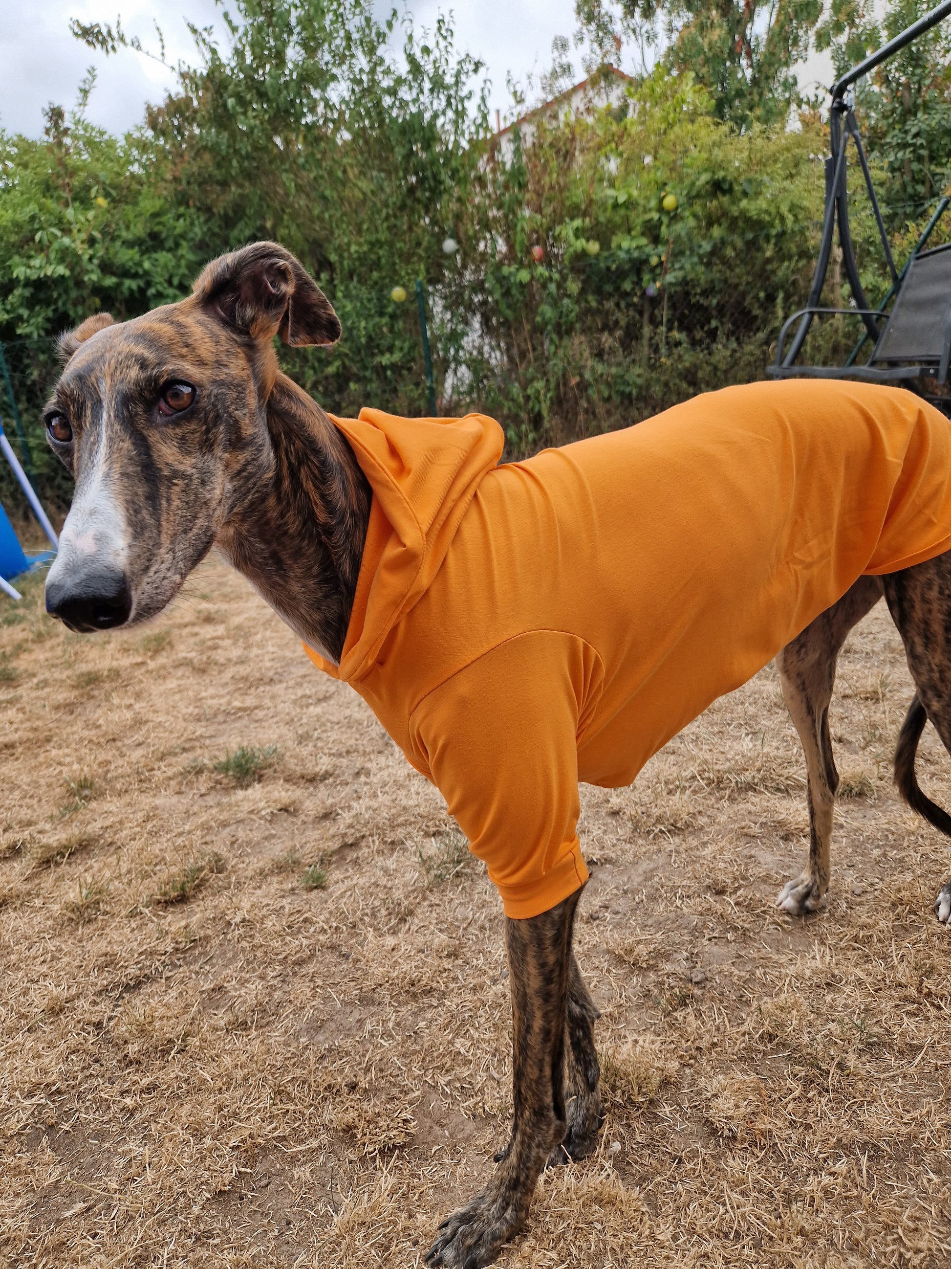 Das Longsleeve hat eine Kapuze und besteht aus Baumwolljersey. Es ist ein angenehmer weicher & leicht zu tragender Stoff. Außerdem ist es weit nach hinten geschlossen, damit der Bauch bedeckt ist. Diese Longsleeve wird auf Maß angefertigt, damit es für den Hund auch passend ist. In der Abbildung stehen die genauen Angaben, falls du fragen oder wünsche hast schreib uns gerne an unter MissHopeGalgostore@gmx.de an. Wir freuen uns