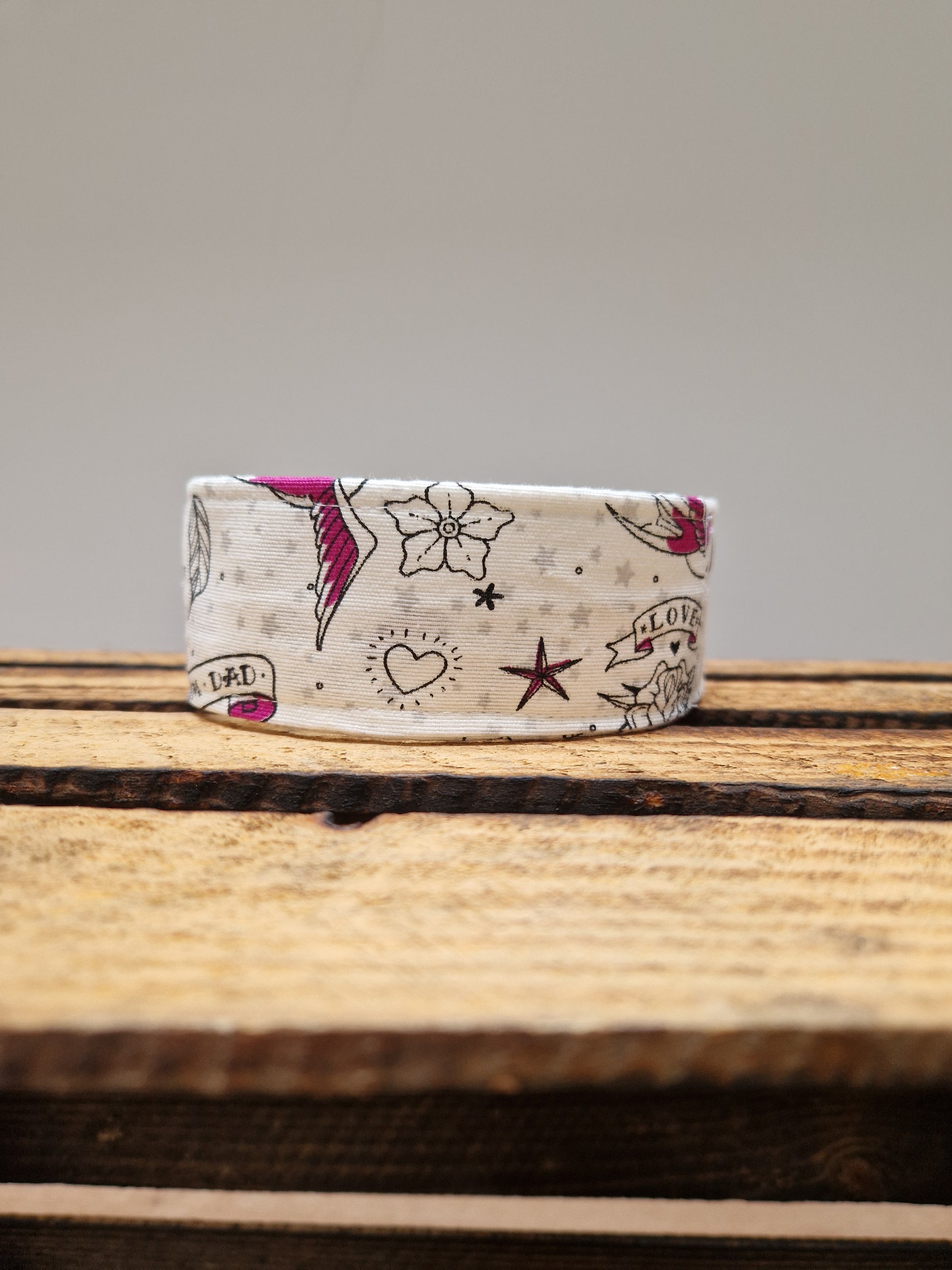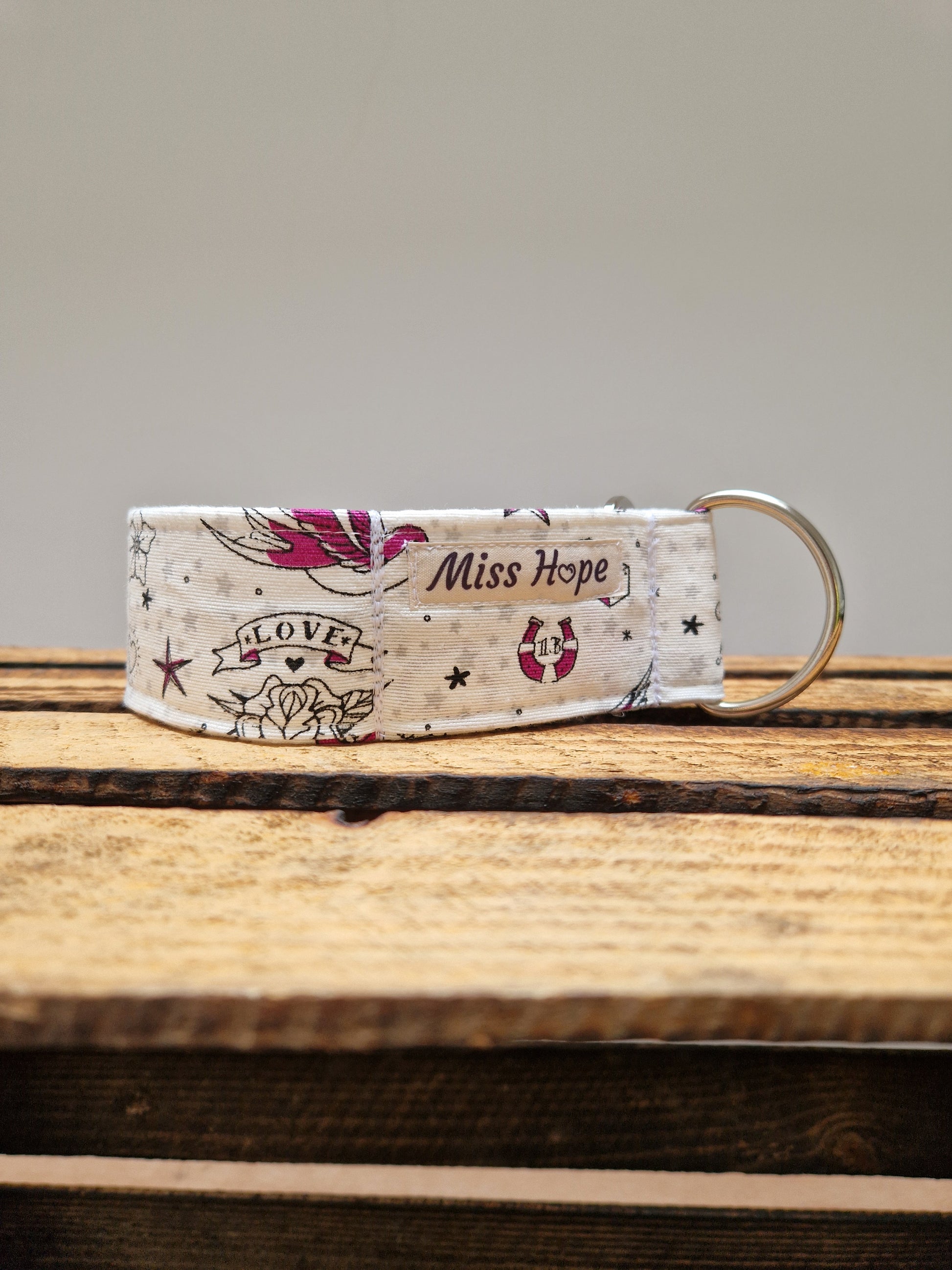 Das niedliche Zugstopp Halsband lässt sich bis zu einem Halsumfang von ca. 40 cm einstellen. Es ist 5 cm breit und verteilt bei einem Leinenruck den Zug auf mehrere Wirbel und schont den Kehlkopf, so werden dauerhafte Schäden vermieden.