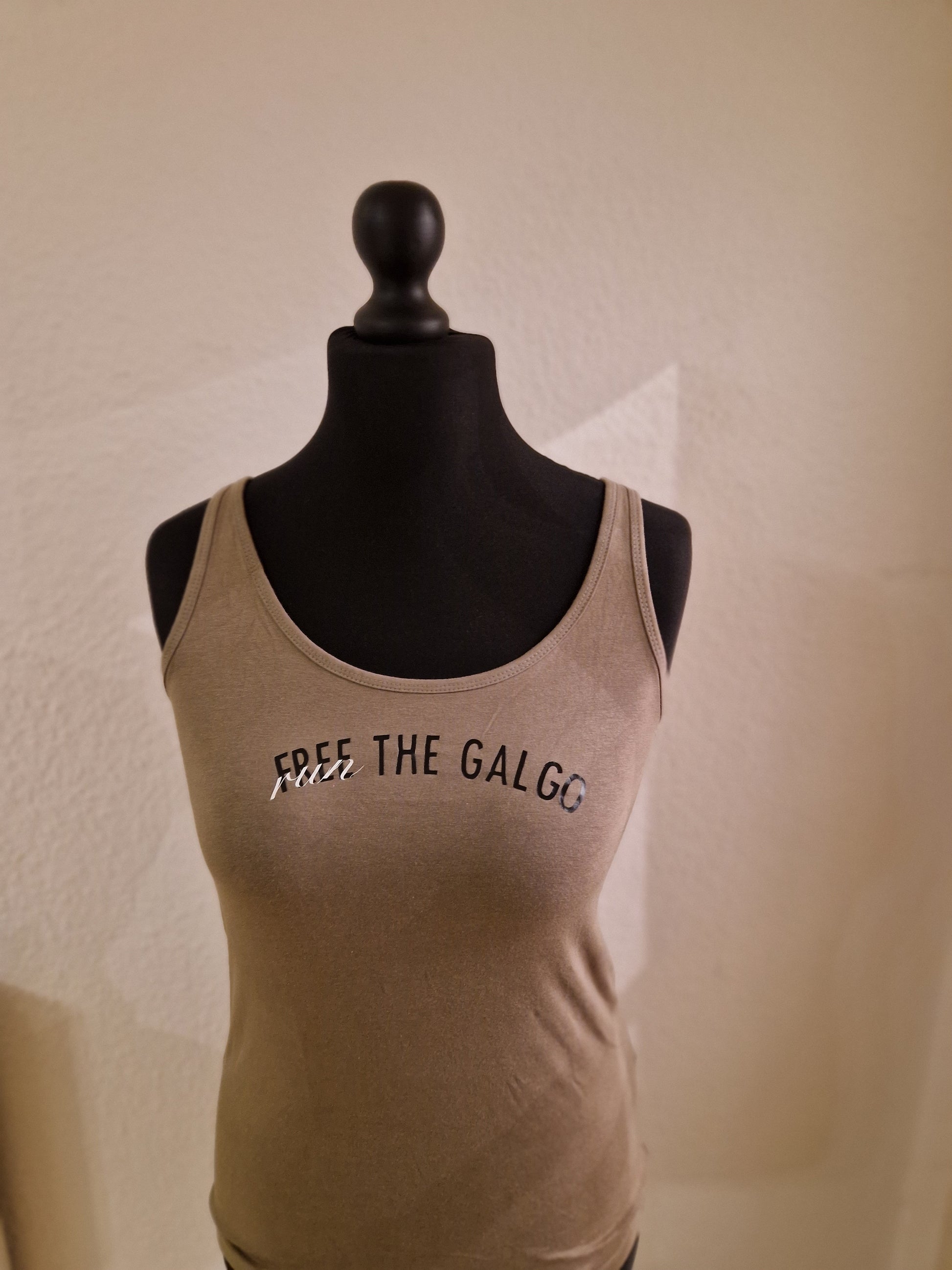 Trägertop in Oliv mit dem Aufdruck *Free the Galgo*
