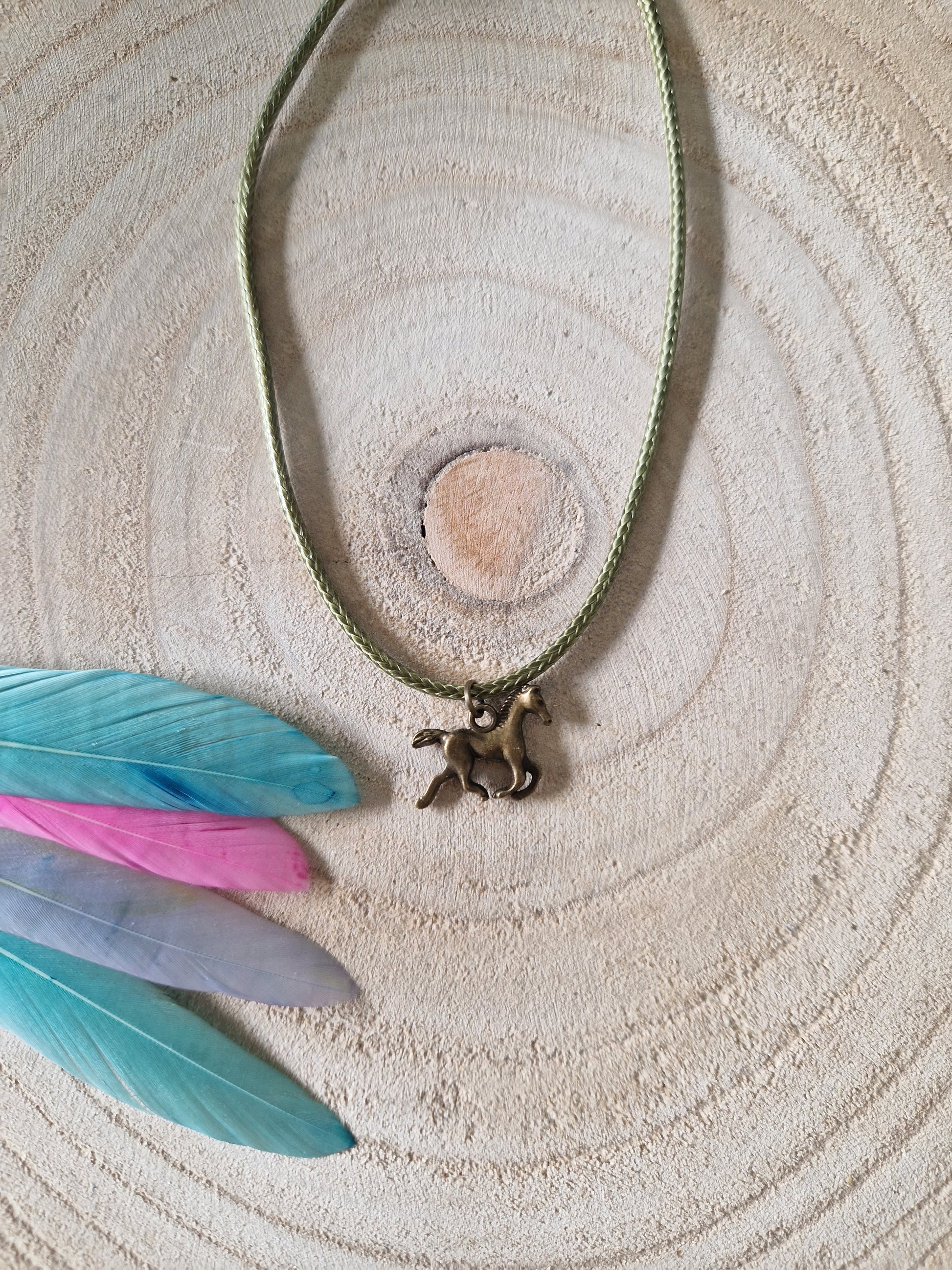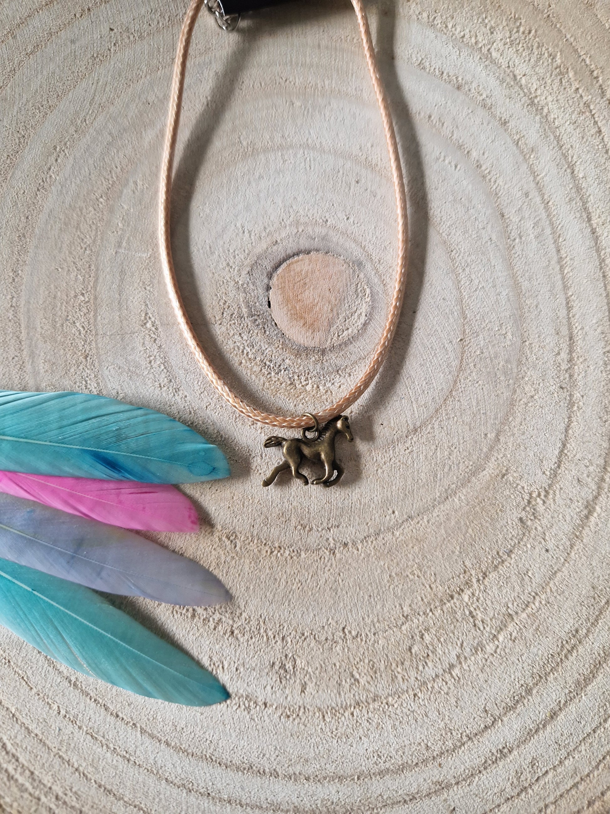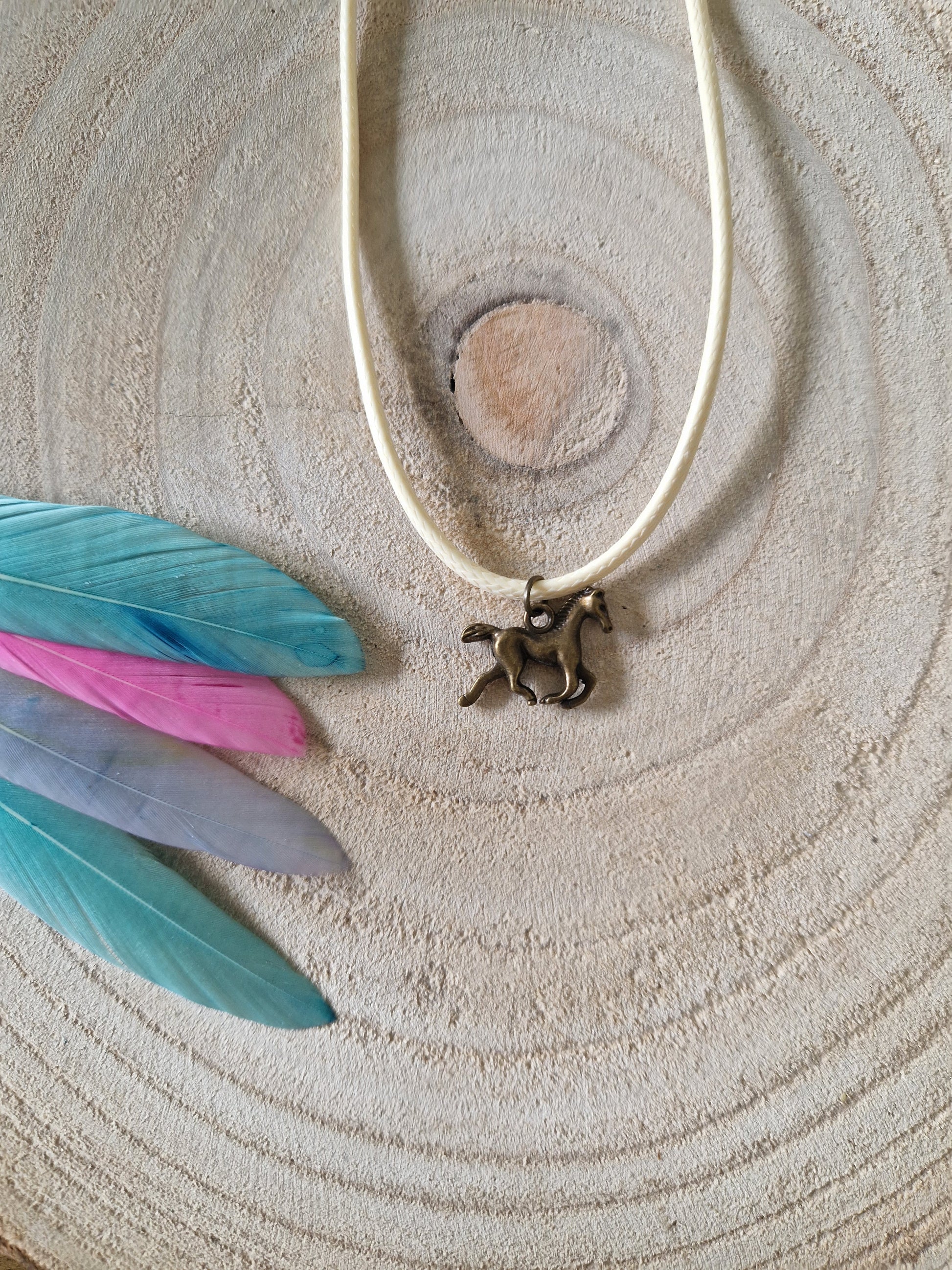 Diese Kette besteht aus veganem gewachsten Lederband und ist auf mehreren Stufen einstellbar. Der niedliche Pferdchenanhänger ist aus Modeschmuck und hat eine Größe von ca. 1,5 cm x 1,8 cm.