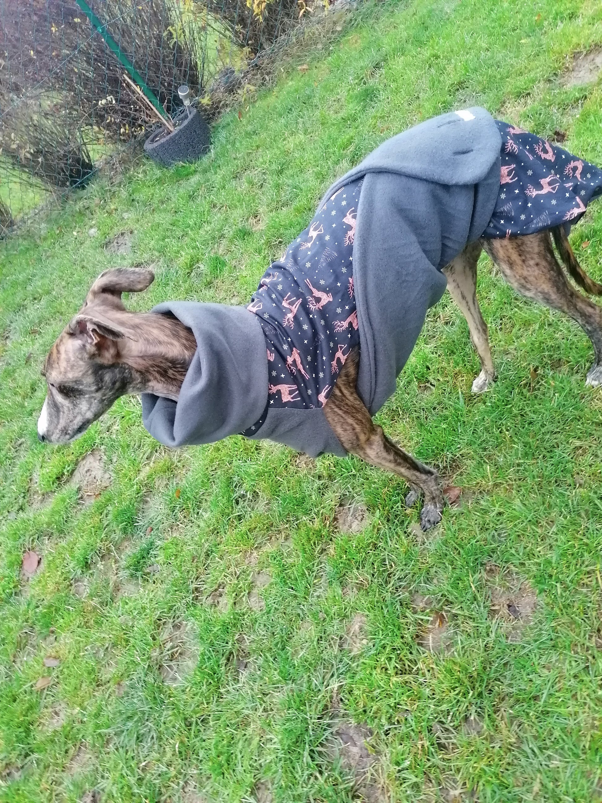 Dieser Mantel ist auf 4 Stufen einstellbar und eher für groß Galgos gedacht!